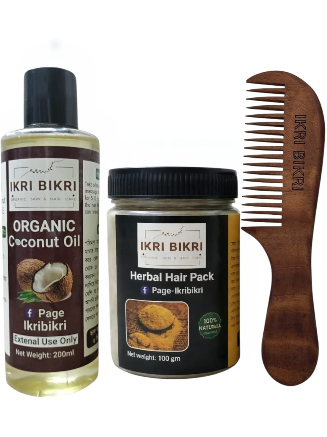 হেয়ার প্যাক +খাঁটি নারকেল তেল +কাঠের চিরুনি